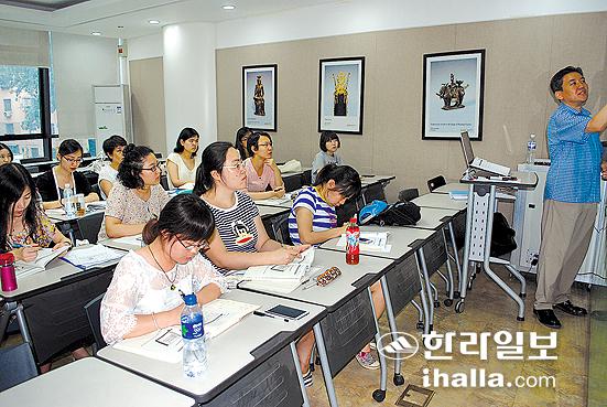 주중한국문화원에서 열리는 한글교실. 진선희기자