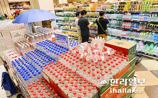 중국에서 생수 전쟁이 치열하게 전개되고 있는데 중국 현지인들을 대상으로 삼다수 유통망을 확대시키기 위한 마케팅은 아직 걸음마 단계에 있다. 청도=강희만부장