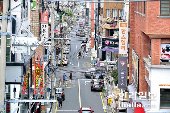 일제가 건설한 북신작로 모습. 일제 당시 제주성안의 중심도로 역할을 했으나 현재는 원도심 침체와 맞물려 활기를 잃고 있다.