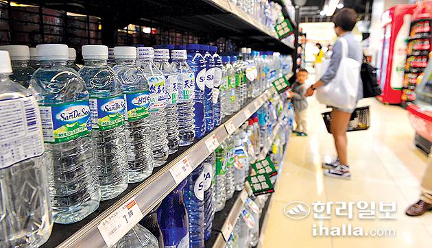 중국 상해의 한 대형마트 생수 매장에 제주 삼다수가 진열돼 있다. 생수 매장에는 삼다수뿐만 아니라 중국 제품은 물론 고가 수입생수로 가득하다. 상해=강희만부장