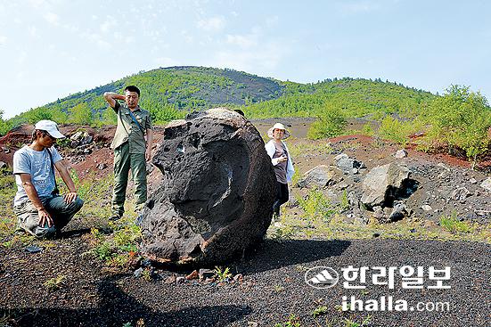 ①강력한 화산폭발로 인해 멀리 날아가 떨어진 거대 화산탄.