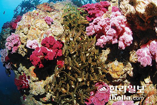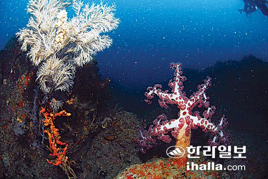 제주 바다의 수온이 상승하면서 연산호 군락이 전남에 가까운 추자도로까지 번지고 있다. 사진은 가지해송과맨드라미산