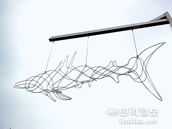 신천리 입구에는 물고기 모양의 와이어아트 조형물이 설치돼 있다. 김지은기자