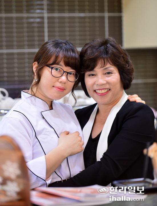 제주시 노형동에서 디저트카페 '오샹띠'를 운영하는 장영옥(오른쪽)씨와 그의 딸 김선희(왼쪽)씨. 강희만기자