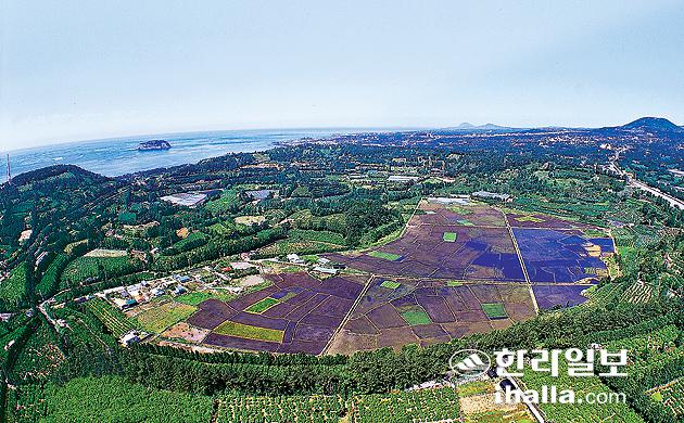 서귀포시 호근동과 서홍동의 경계에 위치한 하논분화구는 규모면에서 한반도 최대이며 유일한 마르(maar) 분화구로 알려져 있지만 오랜 시간이 흐르면서 원형이 훼손되고 있다. 항공 촬영한 하논분화구 전경. 사진=한라일보 DB
