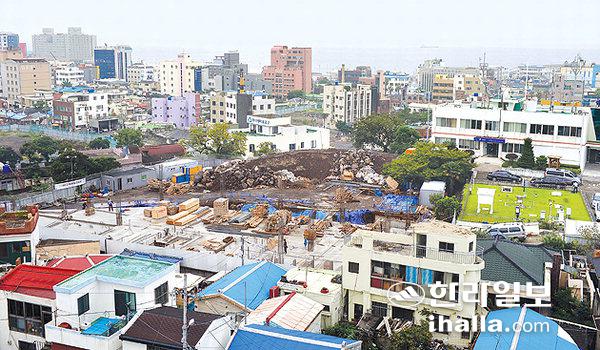 일제강점기에 제주성 동치성을 허물고 성곽 위에 들어선 제주기상청 일대. 강희만기자