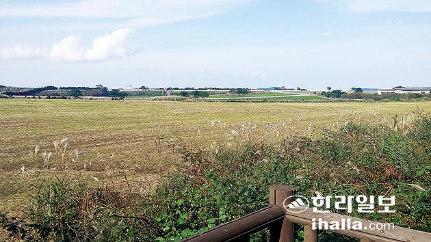 상잣성숲길을 걷다보면 전망대가 나오는데 이 곳에서는 휴양림과 이웃하고 있는 광활한 제주경주마 육성목장의 풍광을 만날 수 있다. 최태경기자