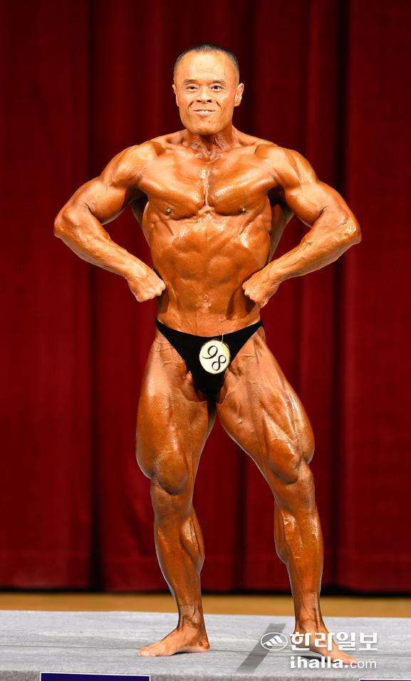 30일 제주학생문화원 대강당에서 열린 전국체전 보디빌딩 남자일반부 밴텀급(65kg)에 출전해 금메달을 획득한 김석(98번 제주보디빌딩협회)선수.