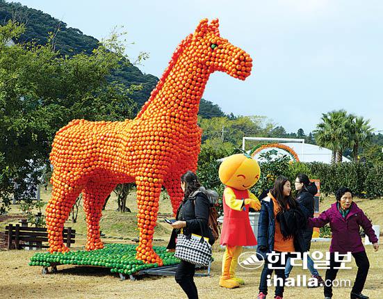 ▶오감만족 체험행사 다채=14일 오전 11시부터 개막 식전행사로 '국민에게 바치는 제주 감귤 진상 퍼포먼스'가 펼쳐진다. 조선시대 임금에게 감귤을 진상했던 모습을 재현해 소비자인 국민들에게 감귤을 올린다는 의미다. 특히 감귤주제관 앞에서 펼쳐질 개막 세리머니도 볼거리다. 대형 감귤 모양을 한 지름 3m 크기의 조형물을 벗겨내면 그 안에 들어 있던 실제 감귤들이 쏟아져 나오면서 동시에 원형 LED가 나타나 축하 영상이 상영된다.
