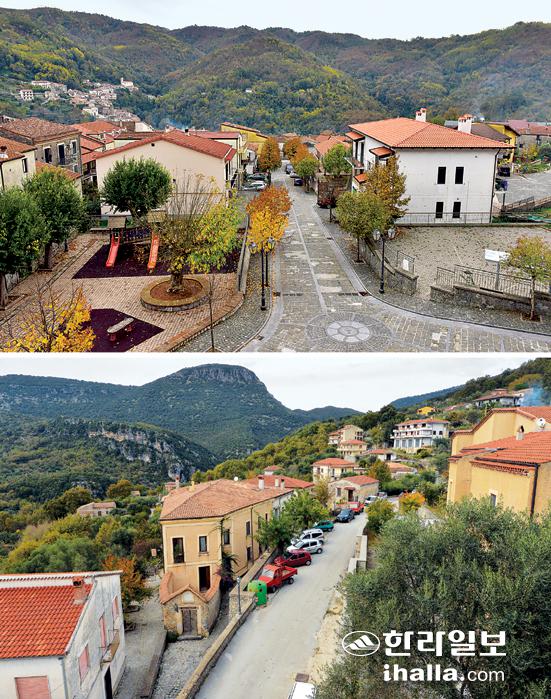 이탈리아 정부와 시렌토 국립공원관리청은 공원내 유네스코 자원을 기반으로 자치구의 권역간 연계 발전전략인 'TOOK-MC'를 추진중이다. 이 프로젝트는 공원 내 80개 자치구 가운데 6개 자치구를 4개 권역으로 묶은 종합발전계획이다. 이 프로젝트의 핵심지구가 바로 카살레토와 토토렐라, 모리제라티 3개 자치구다. 사진 맨 위는 카살레토 마을 전경, 아래 사진은 유서깊은 고대 도시인 모리제라티. 시렌토=강경민기자