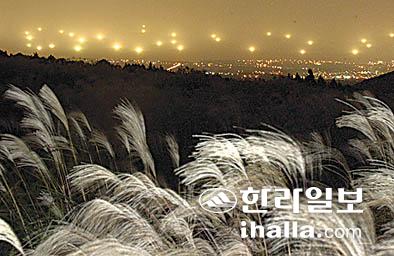 '제주의 봄' 하면 유채꽃을 먼저 떠올린다. 그렇다면 제주의 가을은? 뭐니 뭐니 해도 은빛물결의 '억새'일 것이다. 요즘 제주는 섬 전체가 그야말로 억새 밭, 아니 억새 천국이다. 시내를 벗어나 주위를 둘러보면 높디높은 푸른 하늘 아래 노란 감귤과 함께 억새가 장관이다. 한라산을 둘러싼 산등성이와 오름은 물론 들판마다 억새들이 군락을 이뤄 늦가을 막바지 절경을 이루고 있다.