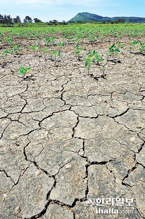 계속된 가뭄으로 콩밭이 거북등처럼 쩍쩍 갈라져 있는 모습. 사진=한라일보 DB