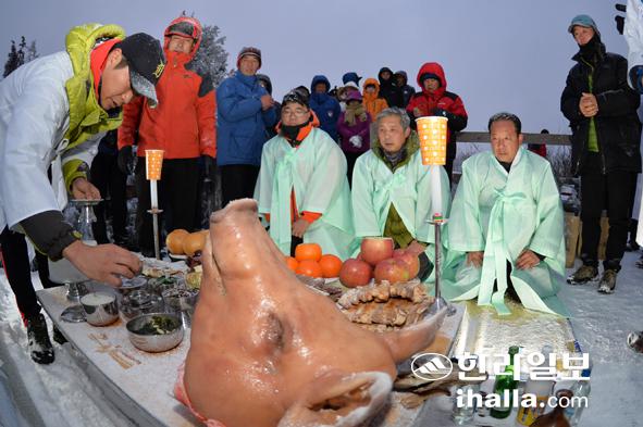을미년 새해 첫날인 1일 오전 유네스코 세계자연유산인 제주시 조천읍 선흘2리 거문오름 정상에서 마을주민과 관광객 등이 참여한 가운데 거문오름 일출제 행사가 열렸다. 강경민기자