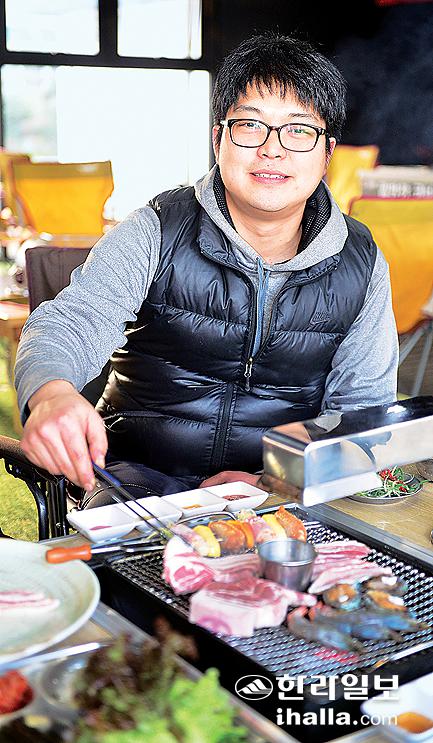그는 재작년 타 지방에 갔다가 우연히 도심 속 캠핑 고기 집을 접했다. 이런 유형의 식당이 제주도에 없는 것 같아 여러 곳을 벤치마킹한 뒤 지금의 캠프를 열게 됐다. 문을 연 지 얼마 지나지 않았지만 벌써 입소문이 퍼져 단골손님들이 꽤 많다. "캠프 분위기는 가족에 초점을 맞췄어요. 제때 휴가를 가지 못한 아빠, 엄마, 아이들을 위해 조금이나마 도심에서 캠핑 분위기를 즐길 수 있도록 했다"고 설명했다. 그는 정육점도 별도 운영하고 있다. 명색이 고기 집 사장인데 정작 고기에 대한 지식이 없으면 안 될 것 같아서 공부 겸 병행하고 있단다.