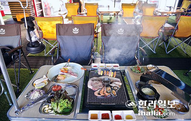 이 같은 캠핑 붐은 요식업으로까지 이어지고 있다. 제주지역에서도 도심 한복판에서 야외 캠핑 분위기를 느낄 수 있는 곳이 개장했다. 지난해 8월 제주시 노형동에 캠핑장(?)을 연 '캠프(CAMP)'다.