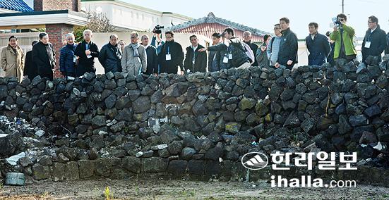 지난 2월 제주를 방문한 일본 시마바라반도 지오파크 협의회 관계자들이 제주시 구좌읍 김녕·월정 지질트레일코스를 둘러보고 있다. 사진=한라일보 DB