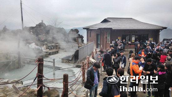 약 3000년 전 일본 하코네화산의 마지막 폭발로 만들어진 오와쿠다니(大通谷)는 유황 냄새와 하얀 연기로 뒤덮여 에도시대까지만 해도 대지옥이라고 불렸다. 그러나 지금은 많은 국내외 관광객들이 즐겨찾는 유명 관광지로 성장했다. 표성준기자