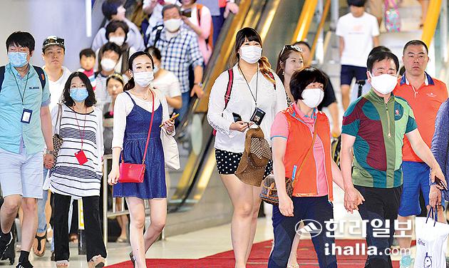 메르스는 호흡기로 감염돼 폐렴처럼 호흡기계에 심각한 손상을 준다. 모든 연령층에서 고르게 감염되며, 고위험군은 당뇨, 신부전, 만성폐질환, 면역저하 등의 기저질환을 갖고 있는 사람이다. 마스크를 한 채 제주공항을 나서는 관광객들. 강희만기자