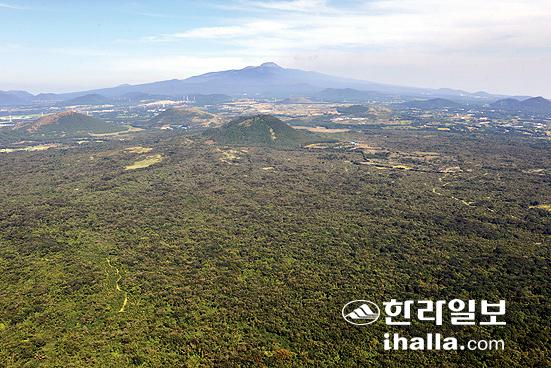 곶자왈시험림으로 지정고시된 제주시 한경면 청수·저지곶자왈 일대의 항공 전경. 강경민기자