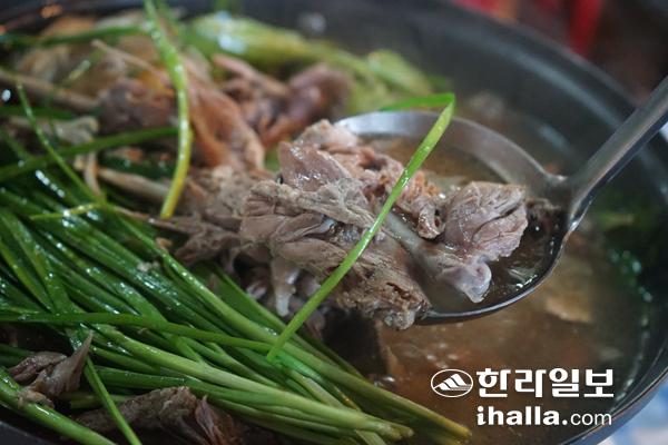 서귀포시 서귀동에 위치한 '오리꼴까닭(대표 김창범·장순화)'은 시원한 솜반천의 물 흐르는 소리를 들으며 옻을 이용한 오리·토종닭 백숙, 돔베고기를 먹을 수 있는 보양식 전문점이다.
