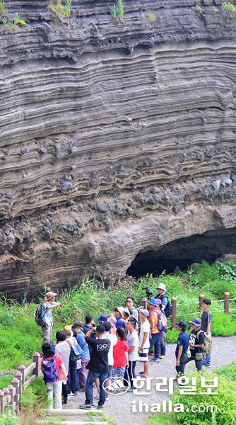 2015 수월봉 지질공원 트레일 행사가 지난 29일 개막돼 9일간의 일정으로 열리고 있다. 주말 휴일을 맞아 트레일 탐방객들이 지질공원을 체험하고 있다. 강희만기자