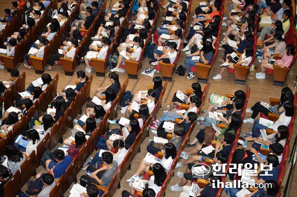 8월 29일 제주학생문화원에서 진행된 논술특강. 이날 '공부의 신'으로 알려진 강성태 공신닷컴 대표가 과목별 공부법을 소개했다. 강경민기자