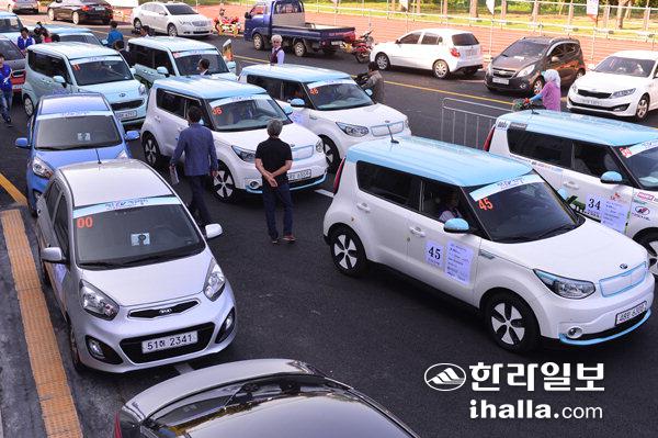 제주도는 오는 2030년까지 도내 모든 차량을 전기차로 대체한다. 사진은 지난해 처음으로 열린 제주 전기차 에코랠리대회 모습. 사진=한라일보 DB