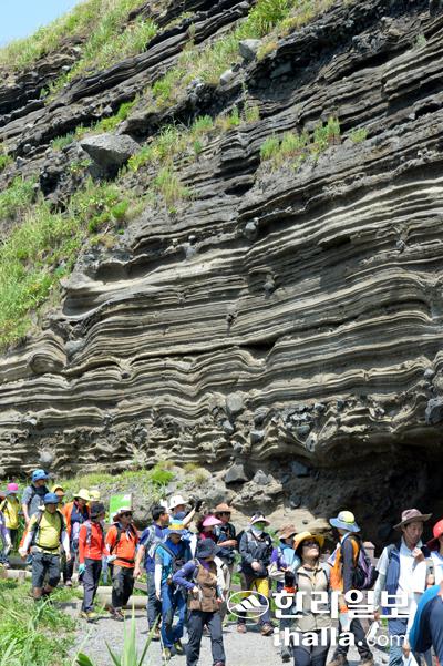 수월봉 지질트레일은 화산재 지층 속에 남겨진 다양한 화산 퇴적구조 덕분에 화산학 연구의 교과서라 불리는 수월봉 해안절벽을 감상할 수 있는 곳이다. 수월봉 전설이 깃든 녹고의 눈물과 태평양 전쟁 당시 구축된 갱도진지, 화산재 지층과 화산탄, 하산분출물을 확인할 수 있는 엉알길 절벽, 검은모래 해변 등 다양한 지질자원과 풍경을 즐길 수 있다.