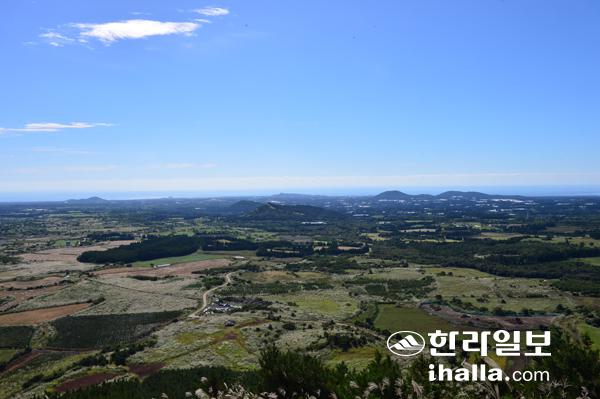 따라비오름 정상에서 본 제주의 전경은 그야말로 절경이었다. 수십여개의 오름이 병풍같이 늘어서 따라비 오름을 감싸고 있었다.