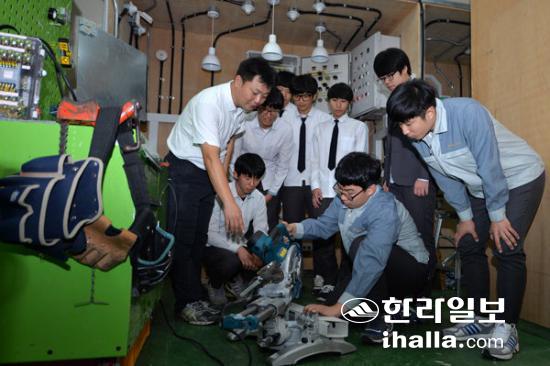 한림공업고등학교 전기과 3학년인 김태범·오대윤·이현수 학생은 올 2학기부터 취업된 보타리에너지(주)에서 함께 현장실습을 하고 있다. 도내 태양광발전장치 전문업체인 보타리에너지(주)는 한림공고와 숙련기술장려후원 업무협약을 체결하는 등 도내 특성화고 출신들의 취업에 적극 나서고 있는 업체다.