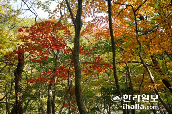서귀포자연휴양림 탐방객들의 눈을 즐겁게 하는 가을 단풍.