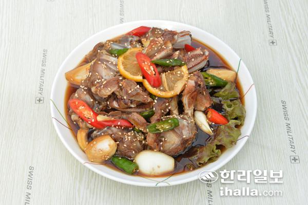 이 식당의 주요 메뉴는 제주산 흑돼지와 추자도산 황게로 만든 간장게장이다. 하루 두번씩 장을 보는 부지런한 부부의 노력이 알음알음 입소문을 타며 단골손님도 늘고 있다. 특히 박 대표가 손수 만드는 황게장은 껍질이 부드러워 남녀노소 누구나 즐길 수 있는 '밥도둑'으로 유명세다. 박 대표가 서울을 오가며 심혈을 기울여 직접 제작한 주물형 구이판도 제주산 흑돼지와 환상궁합이다. 솥뚜껑에 삼겹살을 구워먹던 것을 착안했단다. 베이컨 새우말이, 쟌슨빌 소시지, 캠핑모둠꼬치, 과일꼬치, 전복해물뚝배기 등 골라먹는 맛도 있다. 캠핑해물라면과 추억의 양은도시락도 별미다.