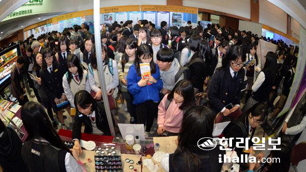 '2015 제주진로직업박람회'가 23일 제주국제컨벤션센터에서 열려 도내 중·고등학교 학생들이 직업체험을 하며 진로정보 탐색 기회를 가졌다. 강경민기자