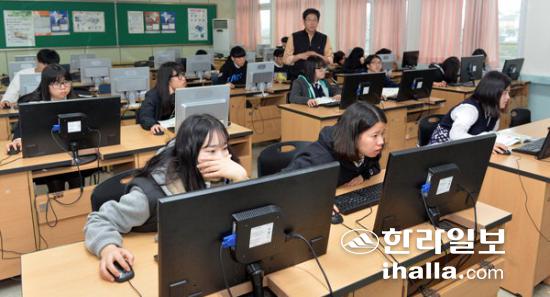 함덕고등학교 학생들이 컴퓨터 실무교육을 받고 있다. 강경민기자