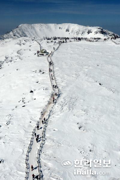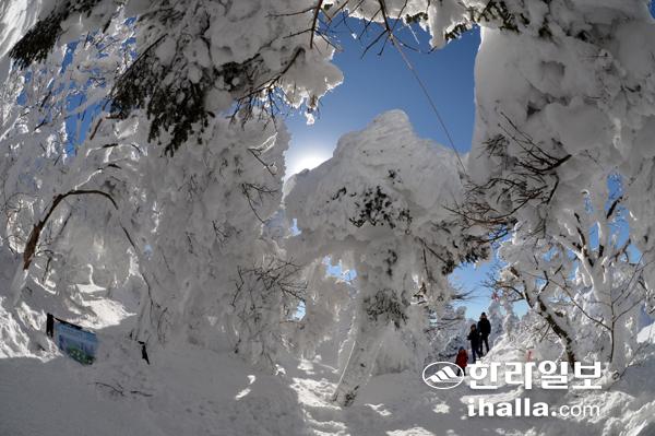 눈 때문에 등산을 포기하는 이들도 있지만 한라산 눈꽃 설경은 비경 중에서도 비경이다. 한라산 탐방로는 어리목과 영실, 성판악, 관음사, 돈내코까지 모두 5개가 있다. 17일 현재 폭설로 돈내코 탐방로가 모든 코스를 통제하고 있지만 다른 탐방로는 안내소(탐방로 입구)에서 대피소까지 오를 수 있다. 겨울 한라산 탐방로 중에서도 영실을 권할 만하다. 다른 탐방로에 비해 짧은 코스이고, 탁 트인 전망이 눈을 호강시켜주기 때문이다. 이 탐방로를 오르다 보면 "여기 와서 보니 제주도 같다"고 감탄하는 관광객들을 쉽게 볼 수 있다.
