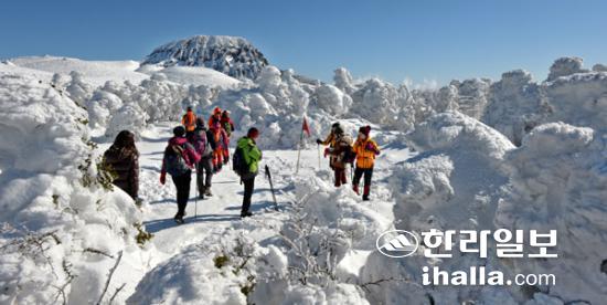 제주의 겨울은 즐길거리로 가득하다. 큰 눈이 내린 한라산 등반길에서 만나는 설경은 신령스럽게 느껴질 정도로 감탄을 자아내게 한다. 사진=한라일보 DB