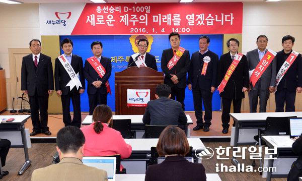 새누리당 제주도당이 4일 제주도의회 도민의 방에서 신년 기자회견을 열어 4·13 총선 승리를 다짐하고 있다. 강희만기자