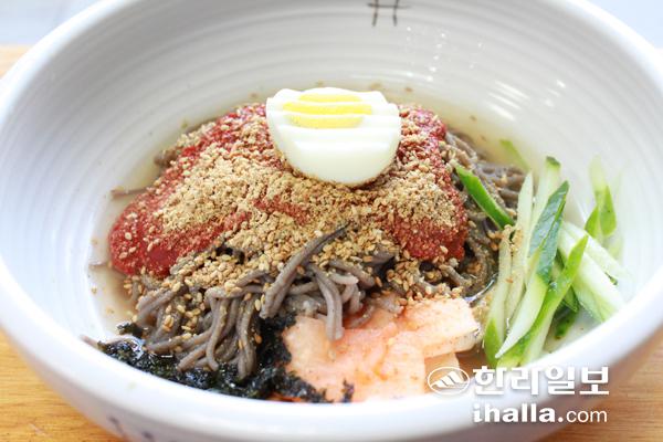면발이 쫄깃, 새콤달콤한 국물 맛을 자랑하는 메밀냉면.