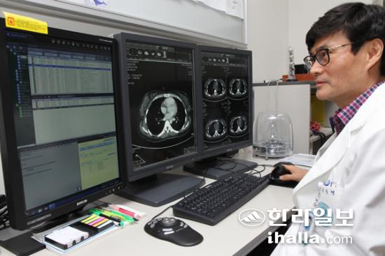 제주대학교병원은 영상의료장비를 지속적으로 업그레이드하는 한편 최첨단 장비를 갖춰 나가면서 과거 수도권 대형병원에서 가능했던 대부분의 시술을 수행하고 있다. 사진은 영상의학과 최국명 교수가 CT검사를 판독하고 있는 모습과 제주대학교병원에 있는 지멘스 MRI 3T. 사진=제주대학교병원 제공