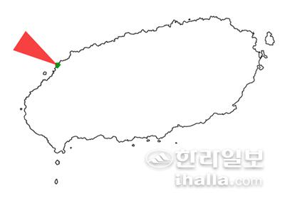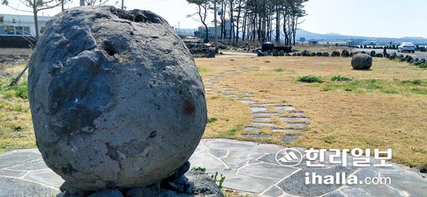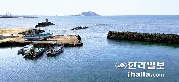 이런 전설을 간직한 마을 상징석이 해안도로 구룡소공원에 자리해 있다. 구에 가까운 형태의 큰 돌을 가지고 지어낸 이야기로 보이지만 참으로 지혜로운 훈육적 가치가 엿보인다. 자식들의 재산싸움을 경계하는 의미로 받아들이면 과도한 해석일까? 구룡소공원에서 평수포구까지 걸어가며 비양도를 본다. 비양도 넘어 하늘에 위치한 태양 빛이 바다에 부서지면 비양도는 빛 위에 떠있는 섬이 된다. 바다가 사라진 듯 작은 환상이 일어난다.