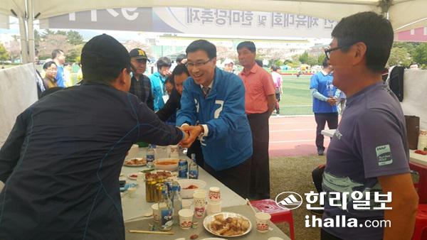 위 후보는 10일 오전 서귀고등학교 운동장에서 열린 서귀고등학교동문회 체육대회 행사장을 찾아 참가 동문들과 일일이 악수를 나누며 지지를 당부했다.