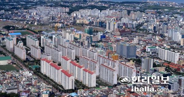작년 한해 1만4000여명의 인구가 순유입될 만큼 너나없이 살고 싶어하는 제주는 단기간에 급등한 집값과 땅값으로 미래의 모습을 심각하게 걱정해야 할 상황에 맞닥뜨렸다. 대단위 아파트가 즐비한 신제주 전경. 사진=한라일보 DB