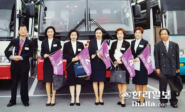2000년대 중반 제주공항 주차장 내 전세버스 앞에서 동료들과 함께한 이선자씨(왼쪽에서 세번째).