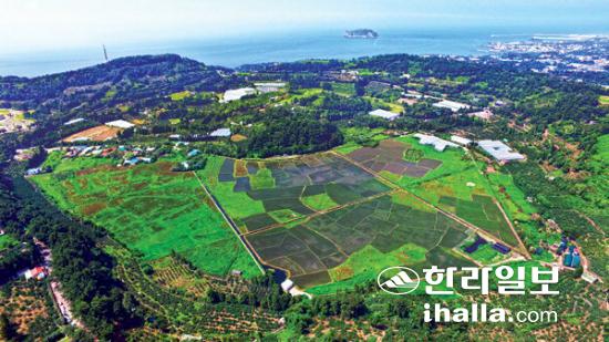 서귀포 하논분화구. 도심 복판에 이런 거대한 분화구를 거느린 서귀포는 축복의 땅이다. 하논의 마르 퇴적층에는 환경과 기후에 따라 그 특성을 달리하는 다양한 퇴적물이 지속적으로 유입·집적되어 '기후 및 환경 기록보존소'로서의 역할을 한다. 드론촬영 김희동천기자