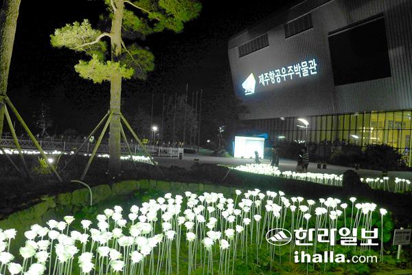 제주항공우주박물관(JAM)에도 여름 밤을 환하게 밝힐 'LED 우주정원'이 꾸며졌다. 오는 8월21일까지 연장 운영을 하며 선보이는 공간이다. 장미등이 수놓은 정원을 걸으며 낮 동안 더위에 지친 몸을 쉬게 했다.
