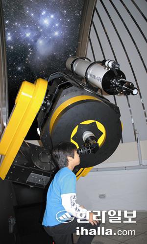 제주별빛누리공원도 그 중 하나다. 별빛누리공원은 우주여행과 전시실, 천체투영실, 4D입체영상관 등으로 구성됐다. 우주에서 태양계를 여행하는 자전거 체험, 실제 우주선을 탄 듯한 느낌을 주는 타임터널 등을 모두 한 자리에서 체험할 수 있다. 요즘 별빛누리공원을 찾으면 아름다운 고리를 가진 행성인 토성을 볼 수 있다. 날이 어두워지는 오후 8시가 넘으면 관측실에선 토성 찾기로 분주하다. 관람 시간은 오후 3시부터 11시까지(입장 마감 10시)이며 매주 월요일에 휴관한다.