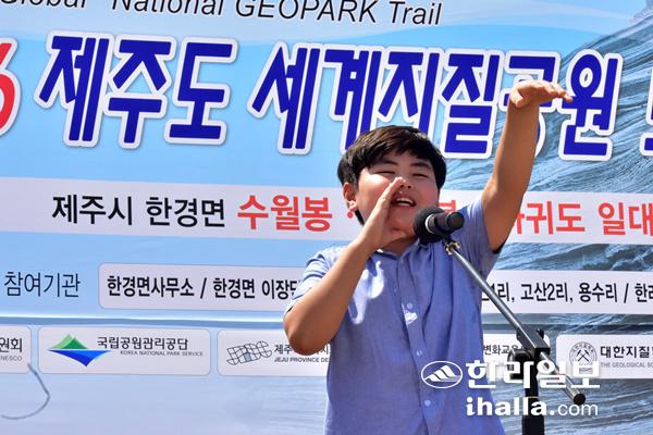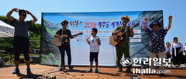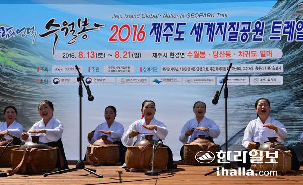 2016 제주도 세계지질공원 수월봉 트레일 개막 행사에 앞서 13일 오전 고산 자구내 포구 행사장 특설무대에서는 흥겨운 식전공연이 펼쳐졌다.