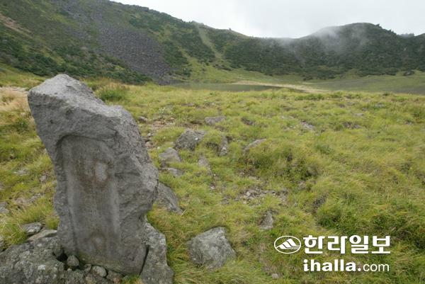 신선부대가 1954년 한라산 입산금지 해제를 기념해 세운 '한라산 개방 평화기념비'. 백록담 인근 북쪽 능선에 남아 있다. 사진=한라일보 DB