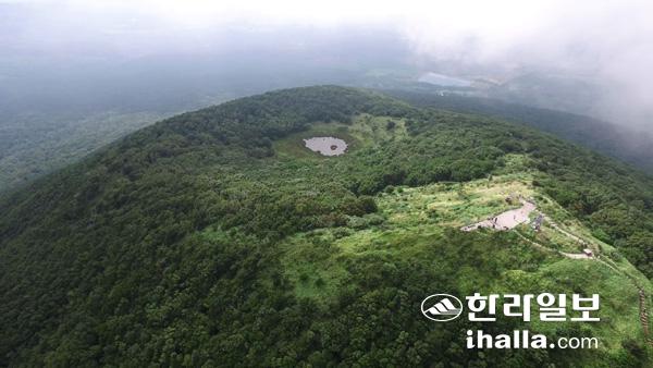 하늘에서 바라본 어승생오름 전경. 4·3 봉기 이후 유격대 지도부는 한라산 어승생오름 일대에 거점을 마련했다. 사진=한라일보 DB
