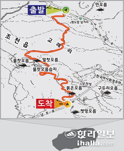 예전 말을 방목하며 항상 말을 볼 수 있다며 이름 붙여진 말찻오름에서 점심식사를 한 뒤 붉은오름 해맞이숲을 통해 붉은오름으로 향했다. 일행과 담소를 나누고 반대편에서 걸어오던 붉은오름 자연휴양림 탐방객들과 인사도 나누며 얼마나 걸었을까. 붉은오름 탐방로 입구가 금세 눈에 들어왔다. 다소 가파른 탐방로를 부지런히 오르자 한라산을 비롯해 주변 오름을 한눈에 볼 수 있었다. 가쁜 숨을 내쉬며 올라온 붉은오름 전망대에선 흐르는 땀방울을 식혀줄 선선한 바람이 불었다.